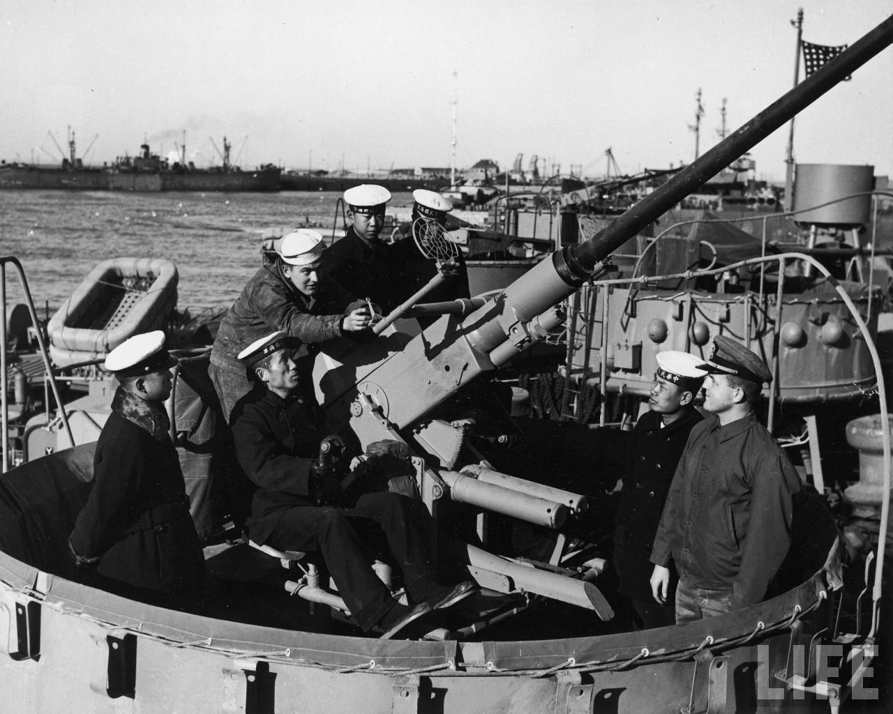 1946年,青岛。美军教中华民国海军使用高射机枪。.jpg
