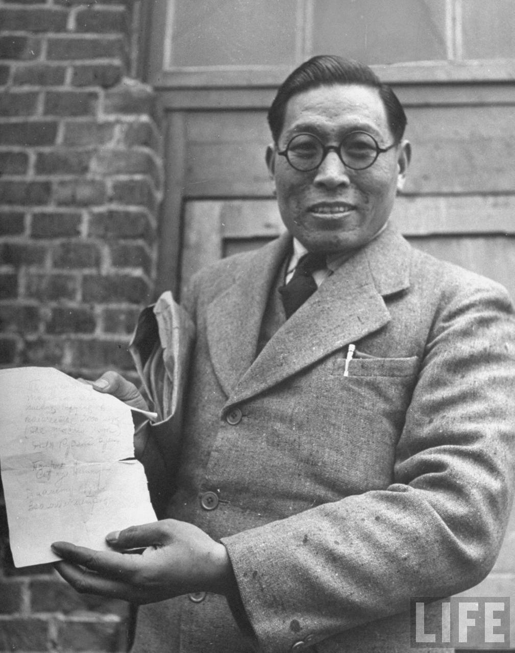 1946年3月,中国沈阳。中华民国负责接收物资的代表Sheherd T. John(怎么是这么个名字,谁?)拿着老毛子用破纸写的物资清单无可奈何,因为纸上用铅笔写的潦草的字简直不知所云。.jpg