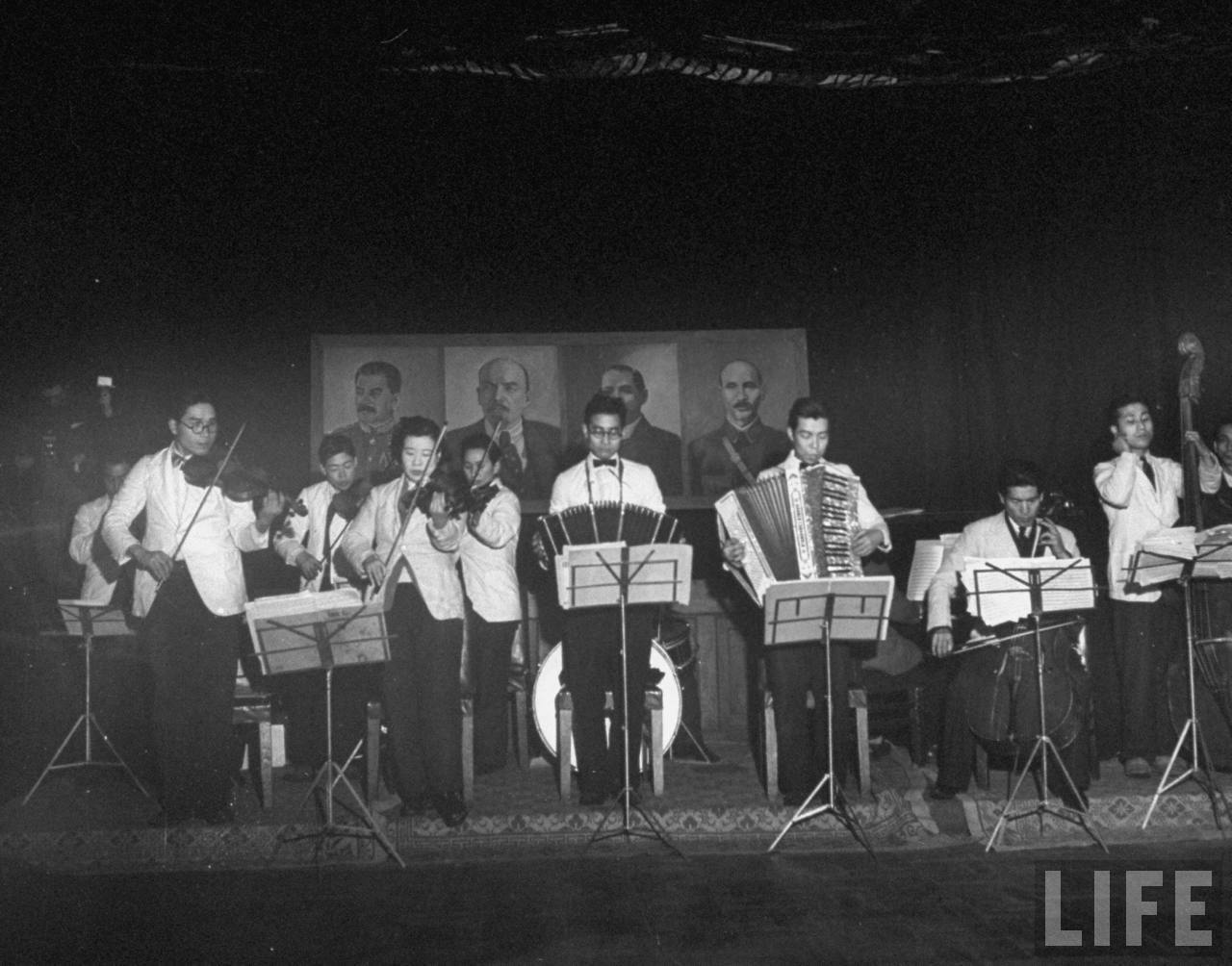 1946年3月,中国沈阳。日本乐团为苏联红军舞会伴奏,所有的女舞伴都是中国和日本女孩。.jpg