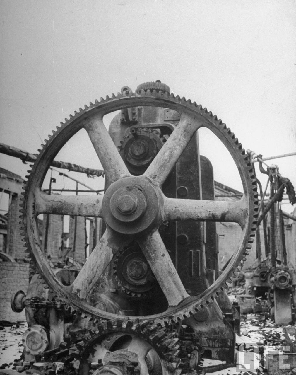 1946年3月,中国沈阳。这是一家原来的日资工场,它已经被苏联人搬运一空,只有这个巨大的钝齿轮机器没能被搬走。.jpg