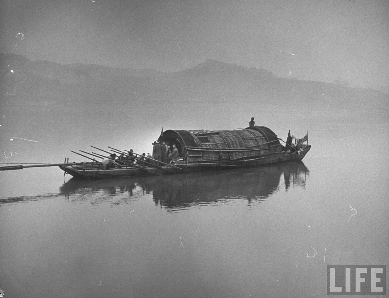 1946年3月,中国西部。一条机动木船航行在四川泸州到重庆之间。.jpg