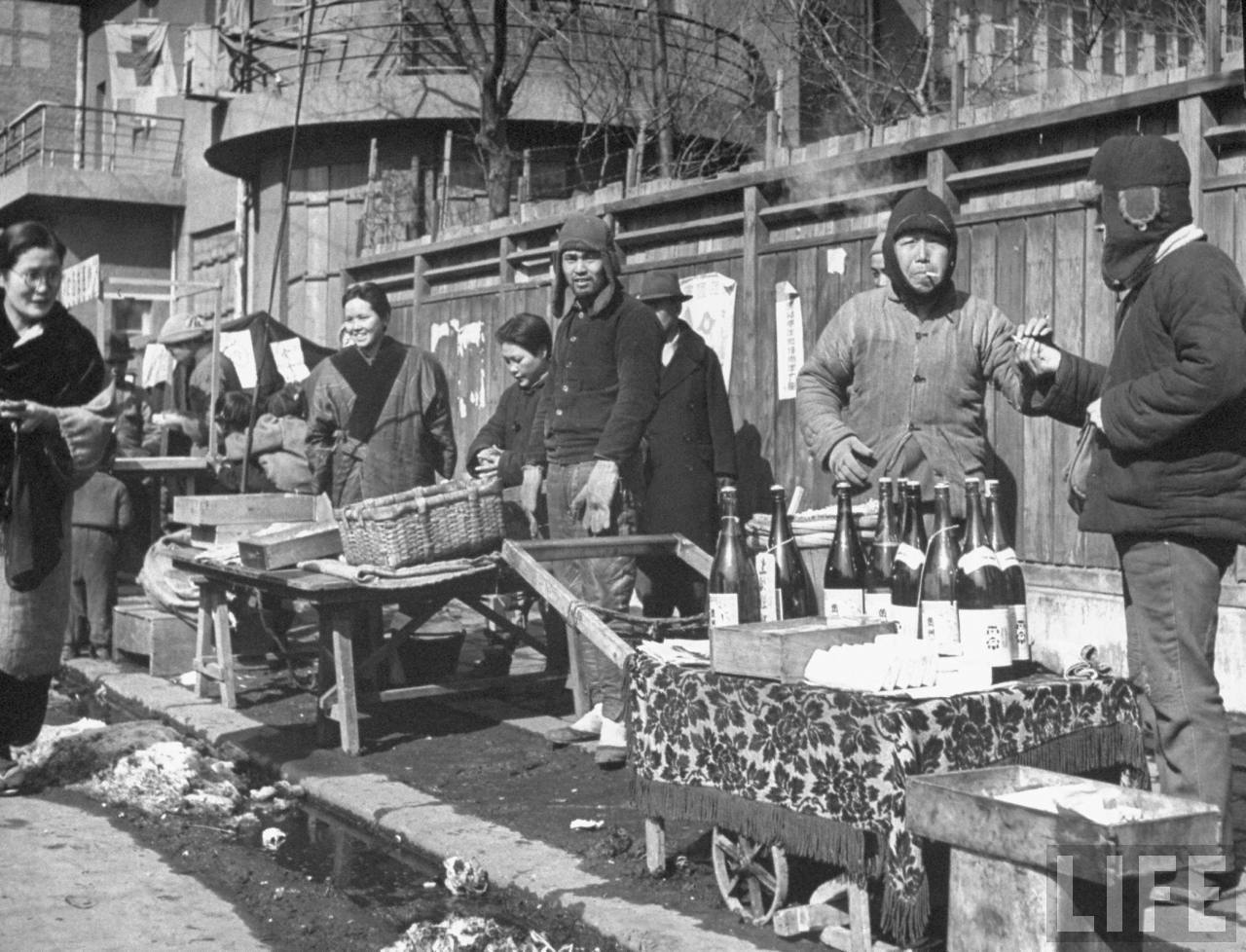 1946年3月,中国沈阳。一群贫困的日本小贩正出售酒精饮料。.jpg