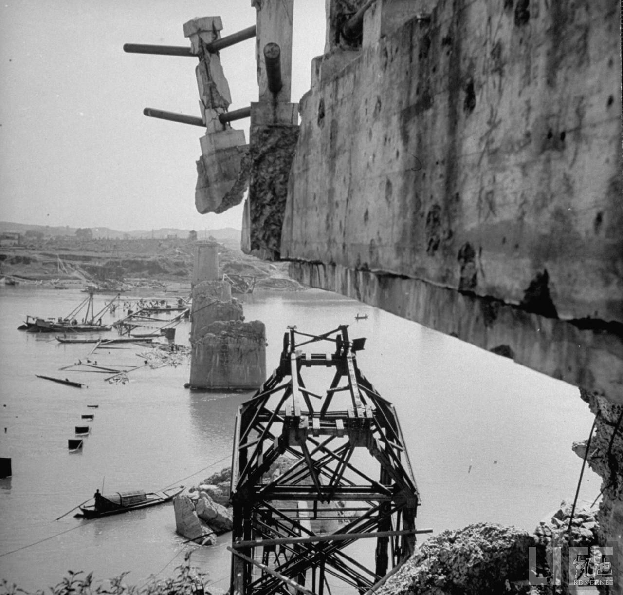 1946年5月,中国。二战时间被毁灭的大桥,还没能重建。.jpg