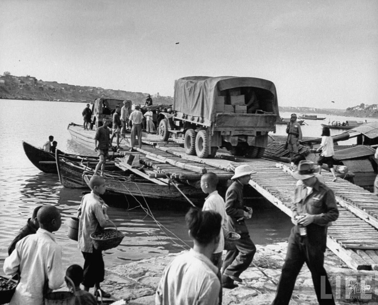 1946年5月,中国。军用卡车被征调用于运输救援物资和食品。.jpg