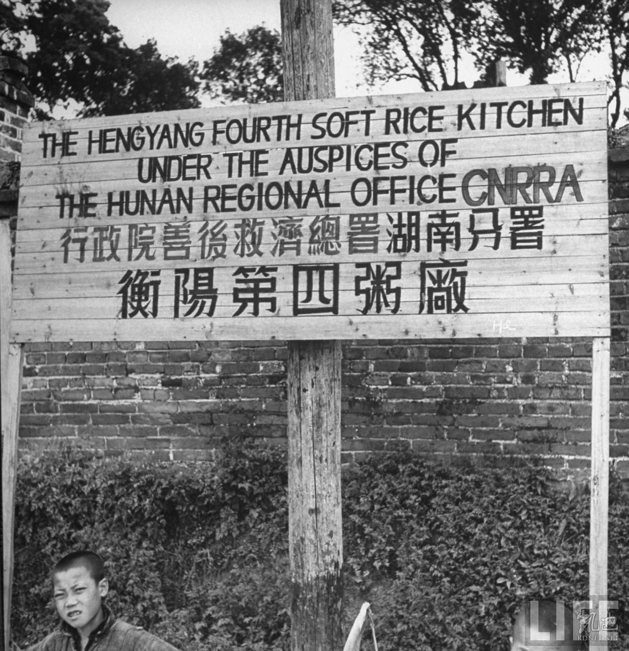 1946年5月,湖南衡阳。衡阳是二战被日军毁灭的城市,战后又发生旱灾,饥民遍地。这是行政院善后救济总署湖南分署衡阳第四粥厂。.jpg