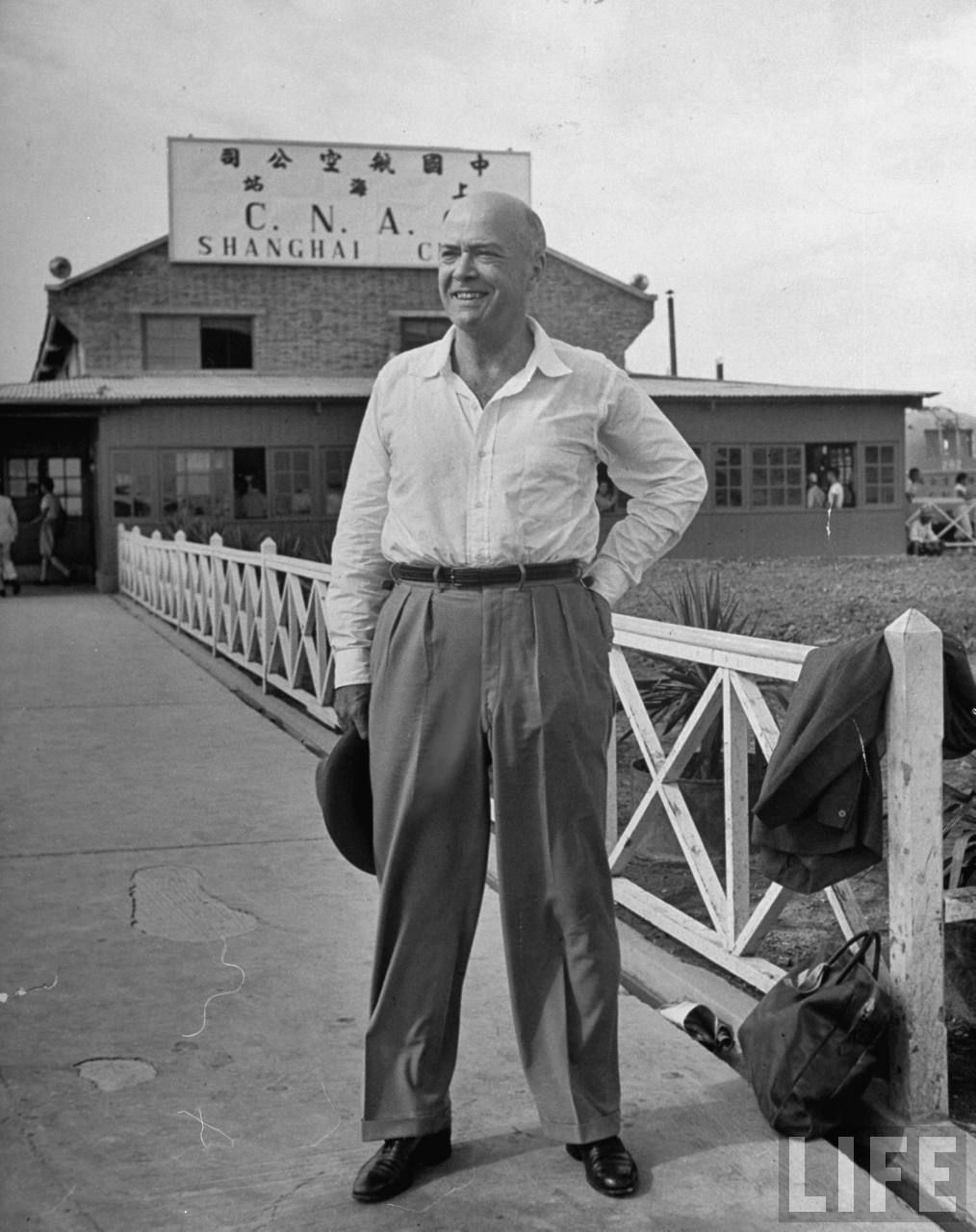 1947年,上海。上海是远东最大的航空枢纽,中国航空公司是中华民国最大的国营航空公司,这是美国大使William C. Bullitt 站在中国航空公司上海站门外。.jpg