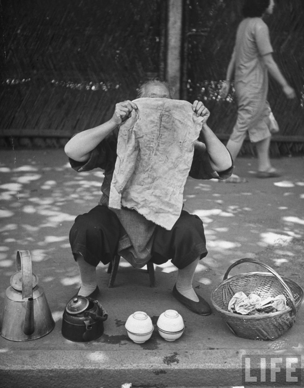 1947年,上海。人行道边上卖茶水的老太婆。.jpg