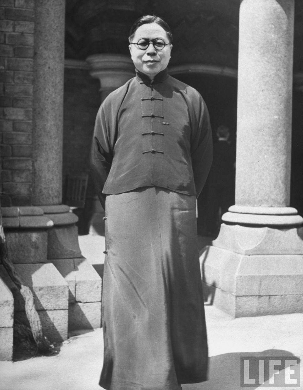 1947年,上海。市长吴国桢全身照,穿的是中华民国时期的标准国服长袍马褂。.jpg