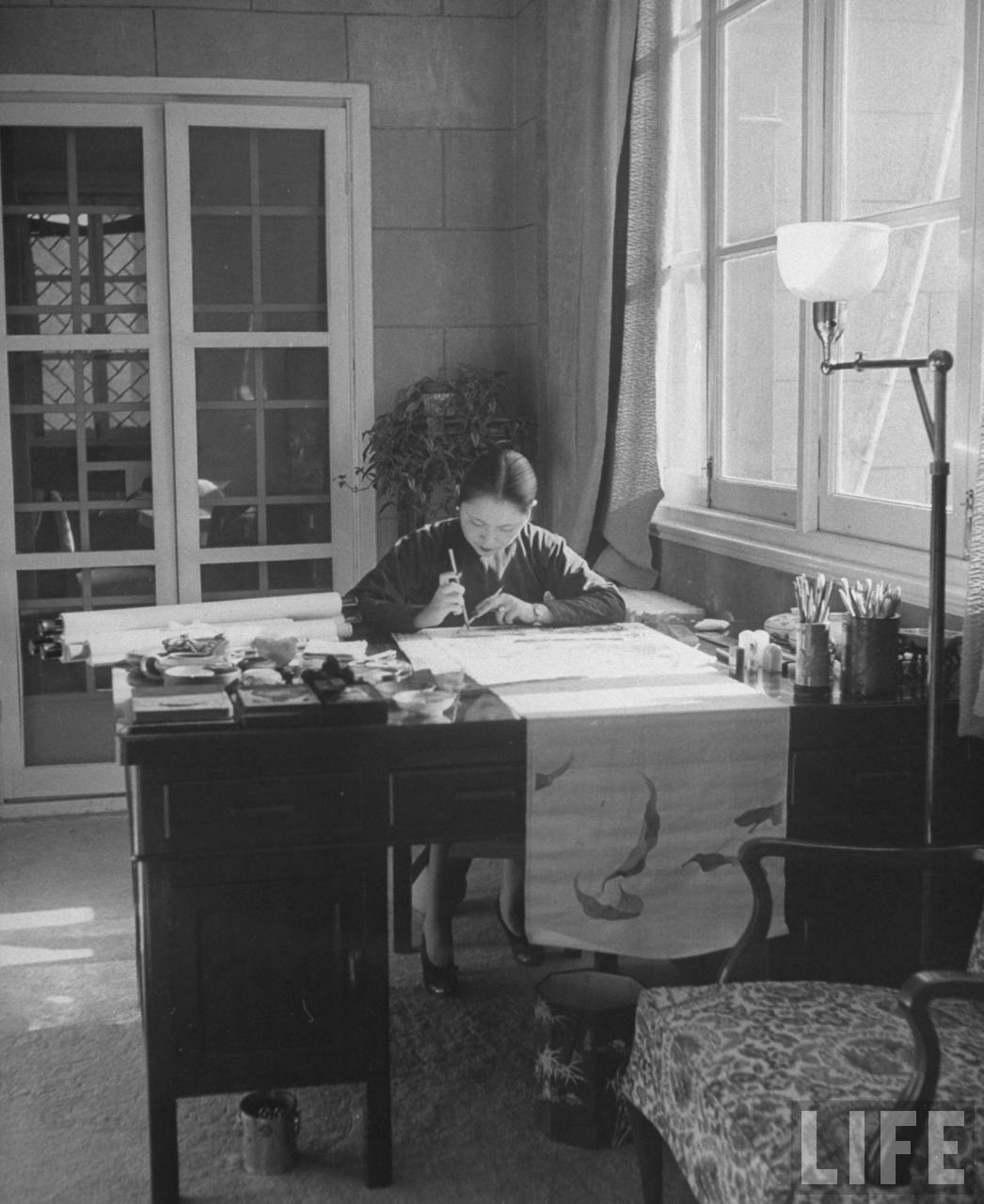 1947年,上海。市长吴国桢的夫人在书房画画.jpg