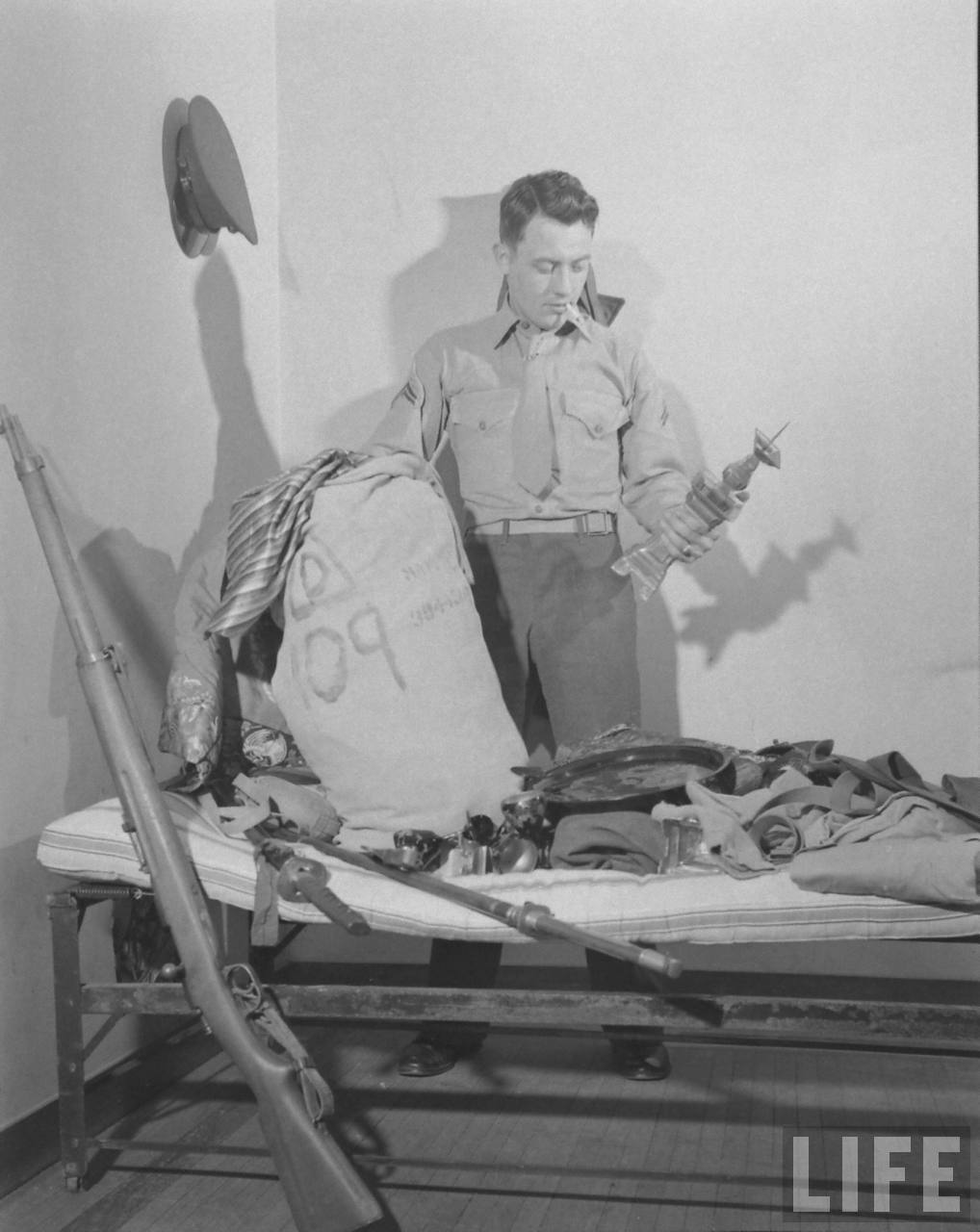 1947年,中国。美军海军陆战队离开中国前查看他的物品.jpg