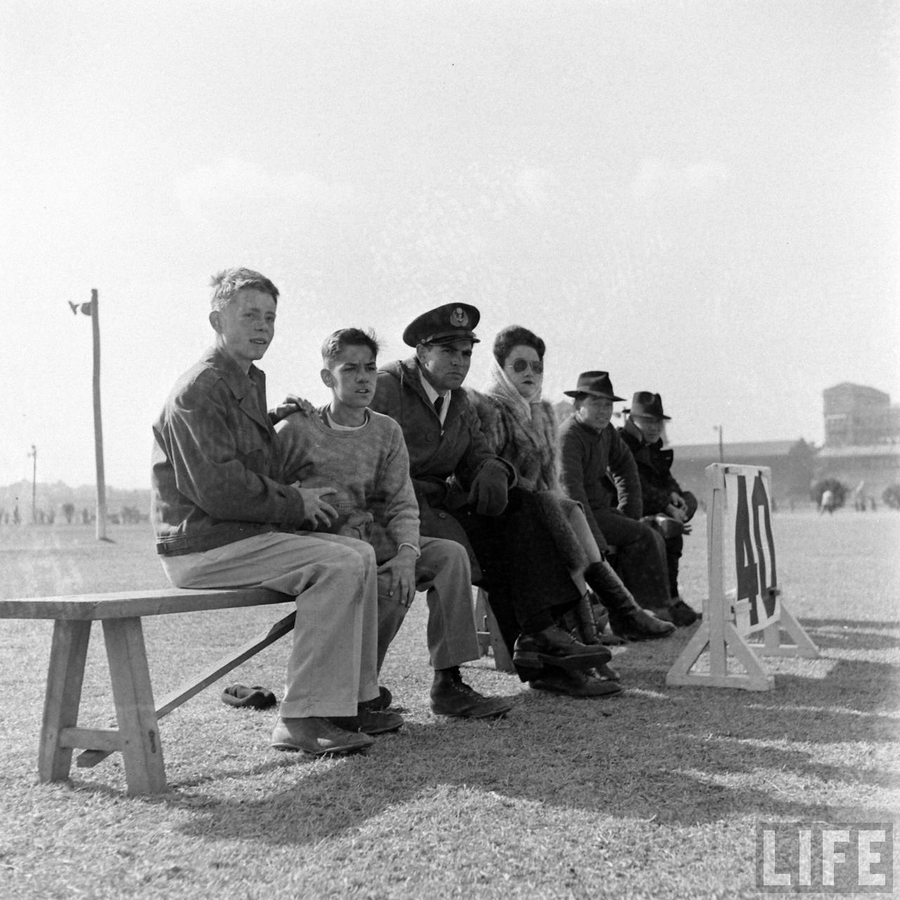 1947年,中国。这是驻华美军举行的一场美式足球友谊赛场地边上,围观的美军何军眷,也有中国人。.jpg