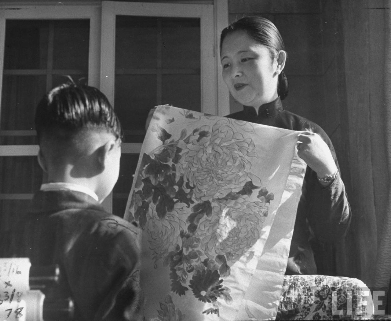 1947年7月21日,上海。市长夫人在展示她的花鸟画.jpg