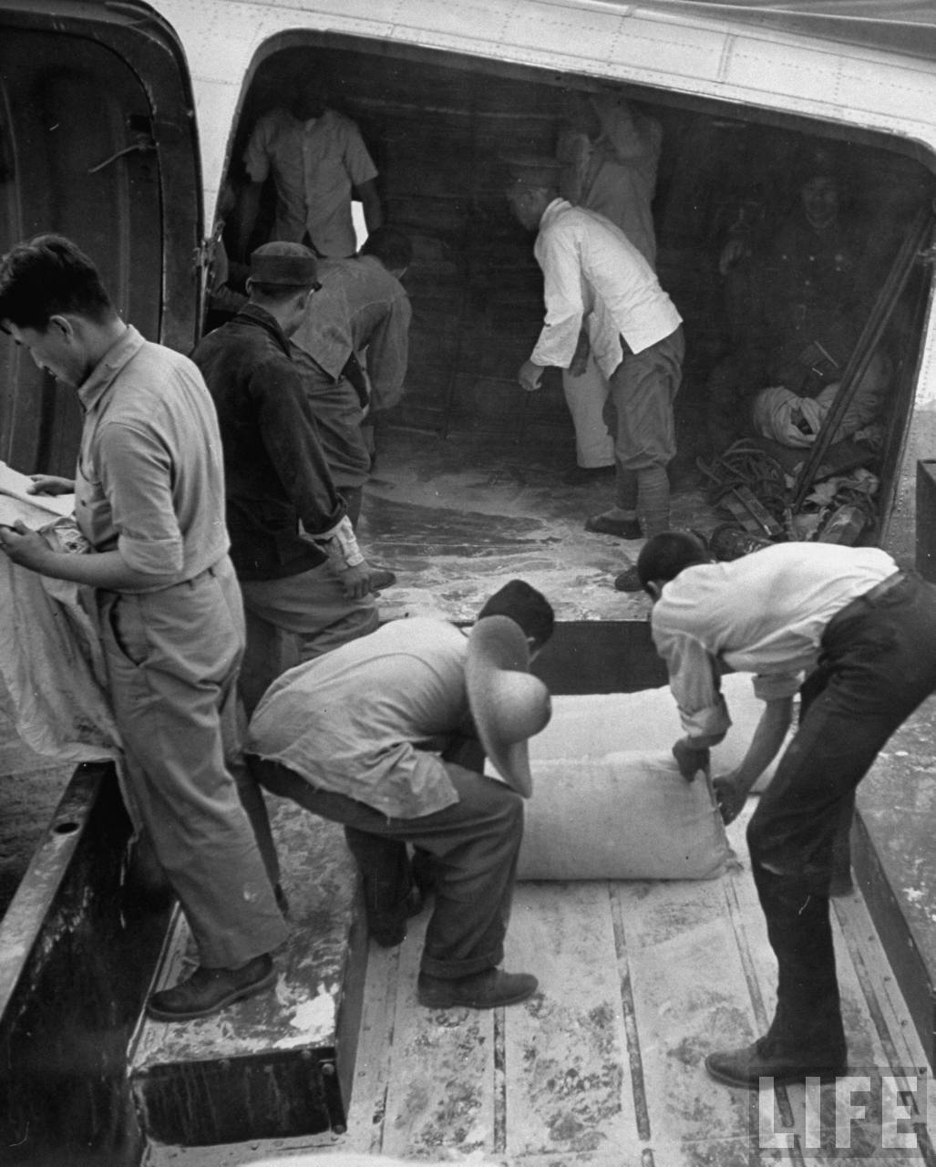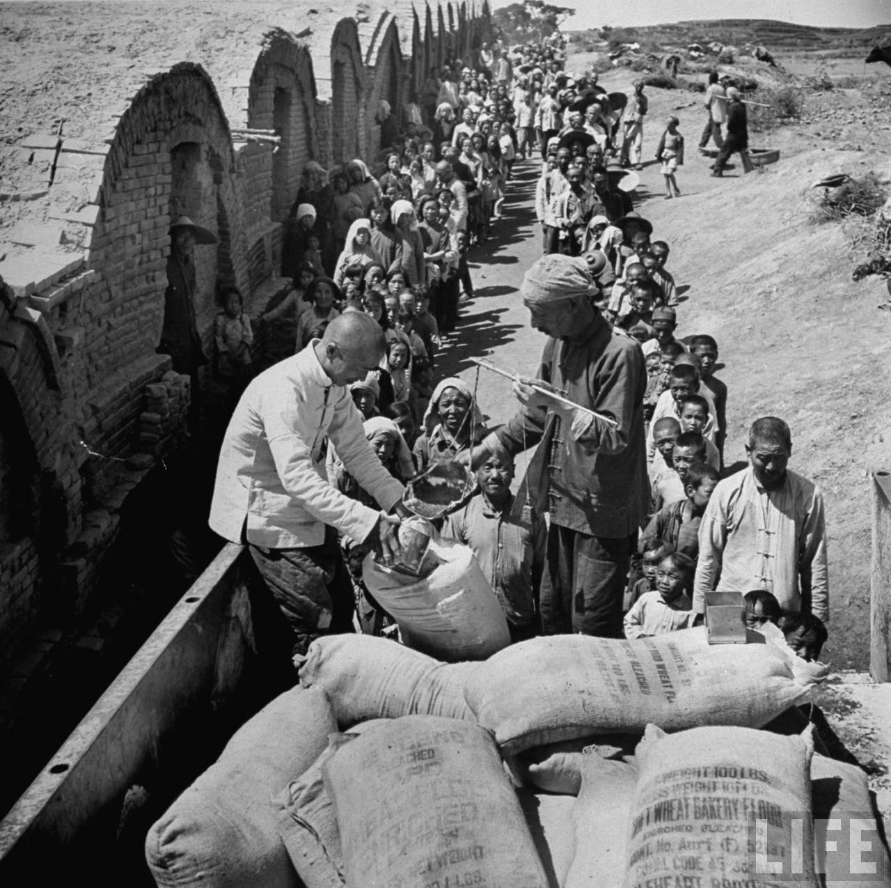 1947年7月21日,上海。联合国救济署紧急发往难民营的面粉,大量的北方中国人逃离共产党控制区住进难民营,面粉他们喜爱的食物。.jpg