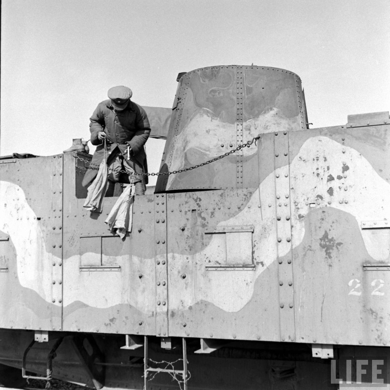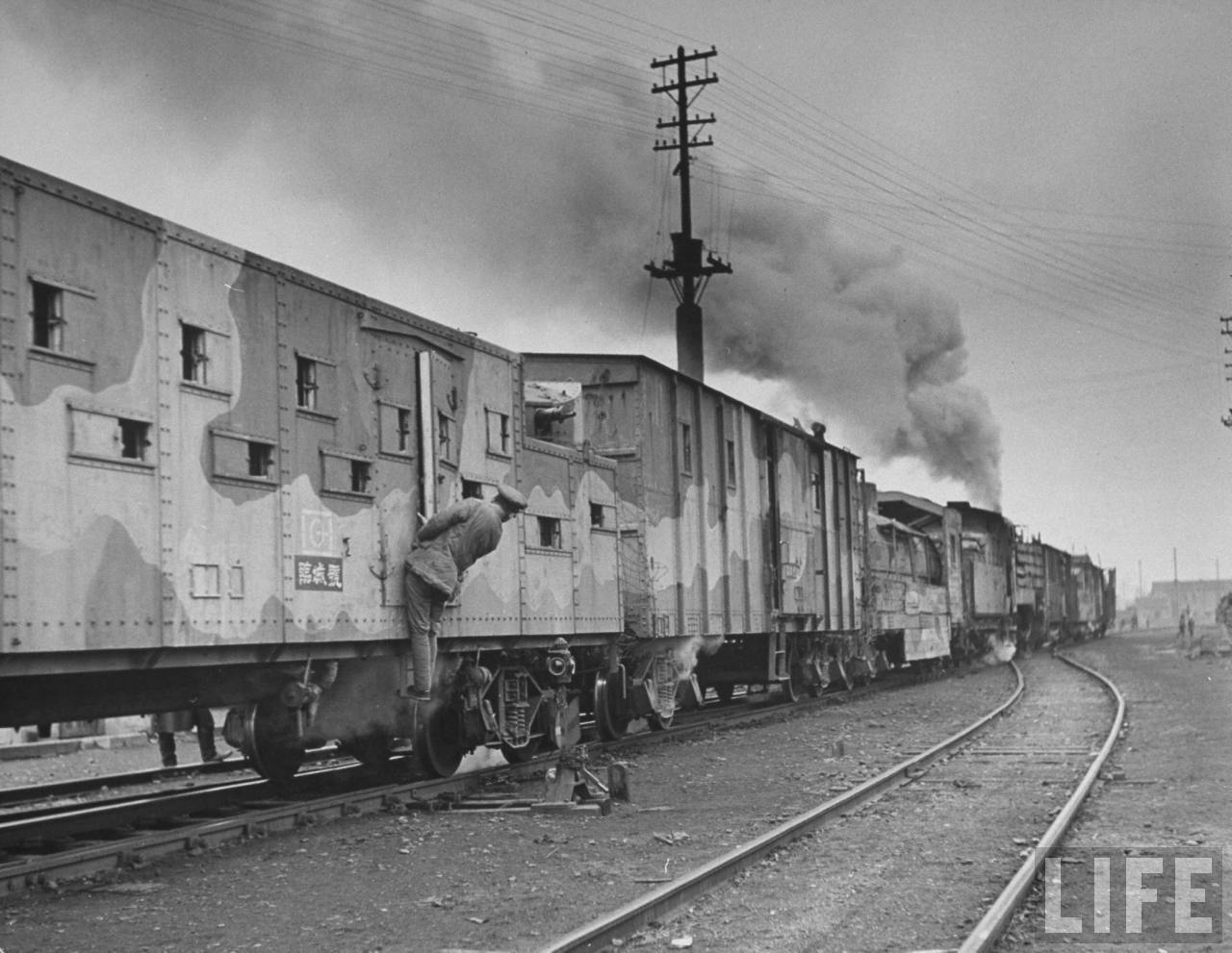 | 1947年,北满。国军士兵吊在军列外警戒,这是蒸汽火车头拉动的货运列车,名字叫“临城号”。.jpg | 2023-February-23 22:57 | 151.21 KiB |