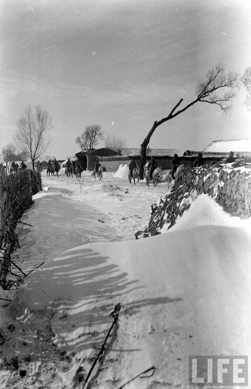 1947年,沈阳。国军骑兵队在郊区巡逻,这里是政府与共产党控制区的犬牙交错地带。.jpg
