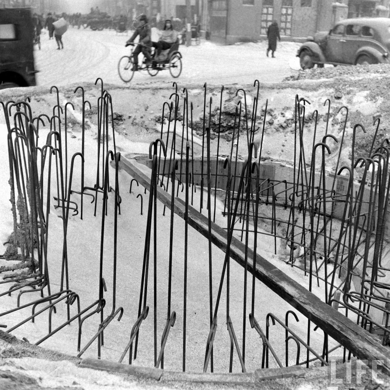 1947年,沈阳。城市的重建工作正待开始,这是正在维修的市中心的喷水池。.jpg
