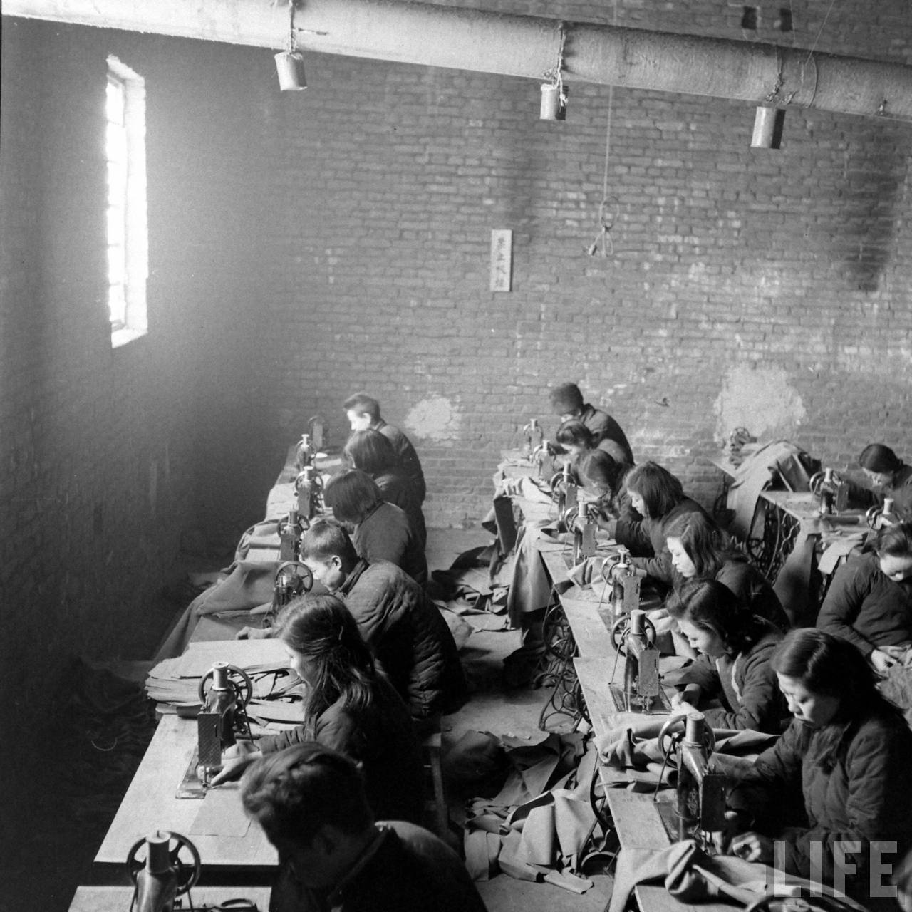 1947年,沈阳。忙碌的私营服装厂,墙上写着 禁止吸烟。.jpg