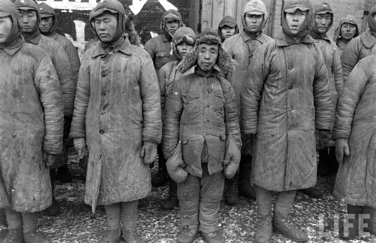 1947年,沈阳。按中华民国政府与苏联政府的条约,除了以大连为中心的关东州交由苏联人占领外,其余城市均由中华民国政府军接收,这是他们的冬季服装,很多士兵是刚从炎热的滇缅战场抗战老兵,来到寒冷的东北对他们来说极不适应。1.jpg
