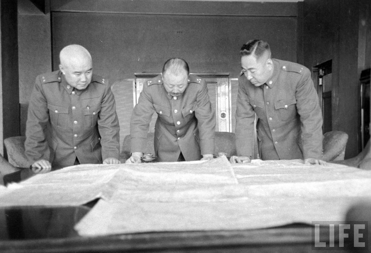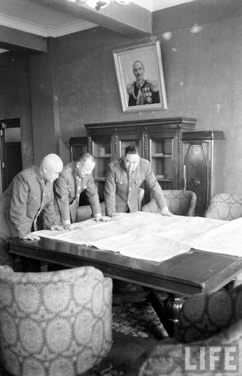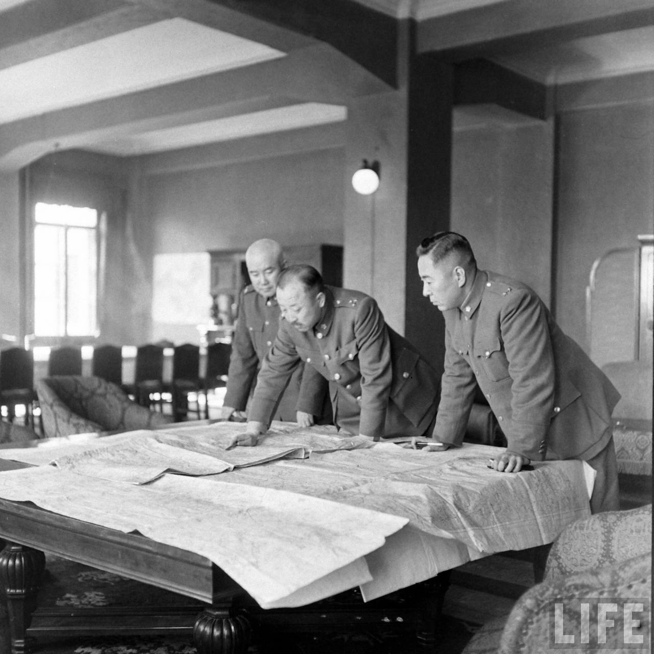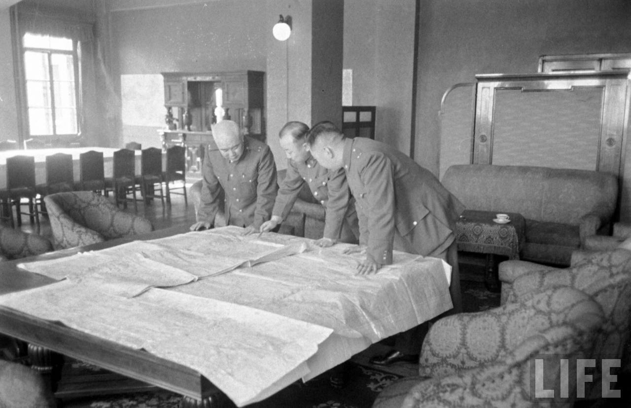 1948年,北平。三位国军将军在查看军事地图,和刚才那张同一地点.jpg
