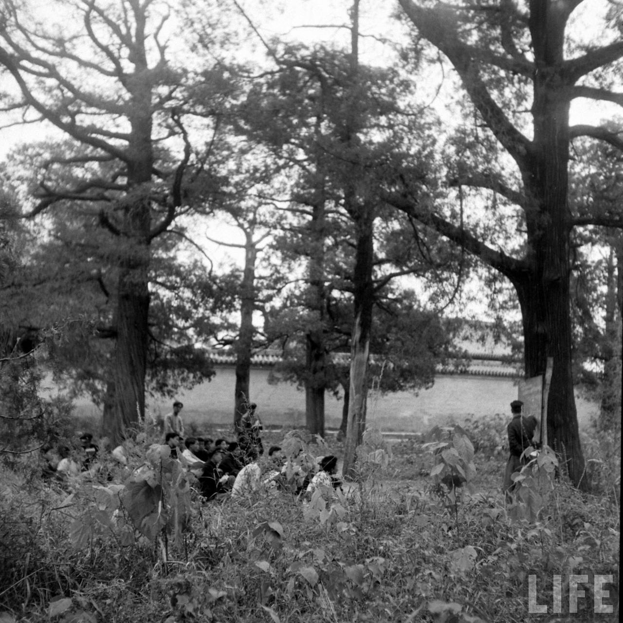 1948年,华北。东北大学的教授和大学生逃亡后在森林里复课。3.jpg