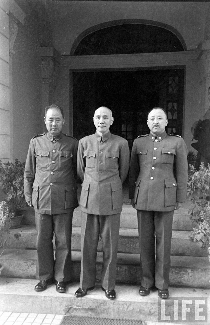 1948年,华北。中华民国总统蒋介石和华北剿匪总司令傅作义还有?,这可能是在北平督战期间的留影。.jpg