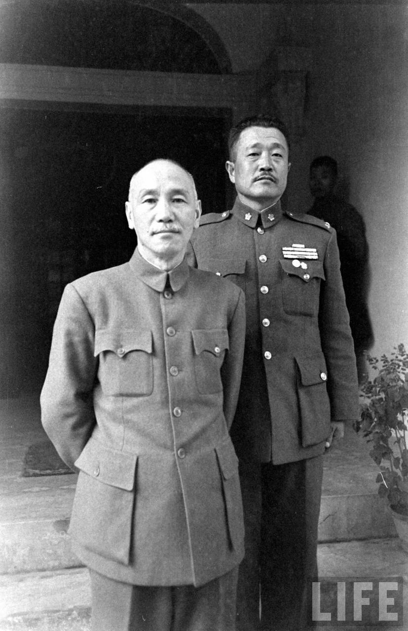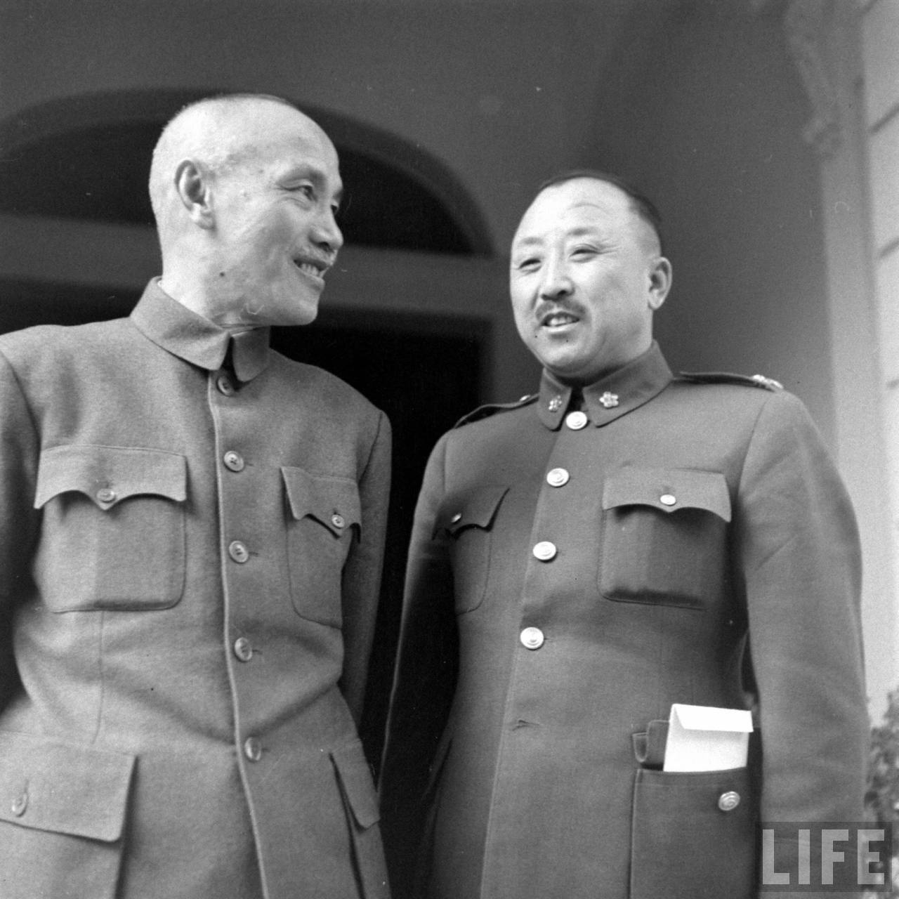 1948年,华北。中华民国总统蒋介石在北平督战期间和东北剿匪总司令卫立煌的留影。.jpg