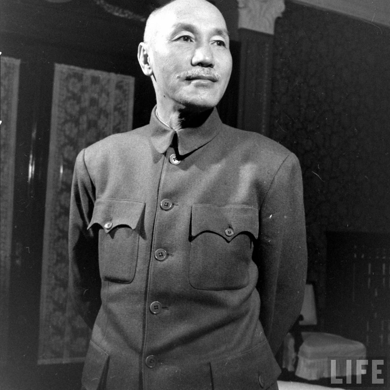 1948年,华北。中华民国总统蒋介石在北平督战期间的留影。东北被绞杀殆尽,平津地区周围被共军围困。回过头来看这段历史,很多网友也提到如果按雅尔塔密约的要求,或者将满洲交给苏联和共产党又如何?现在不知他在想什么?.jpg