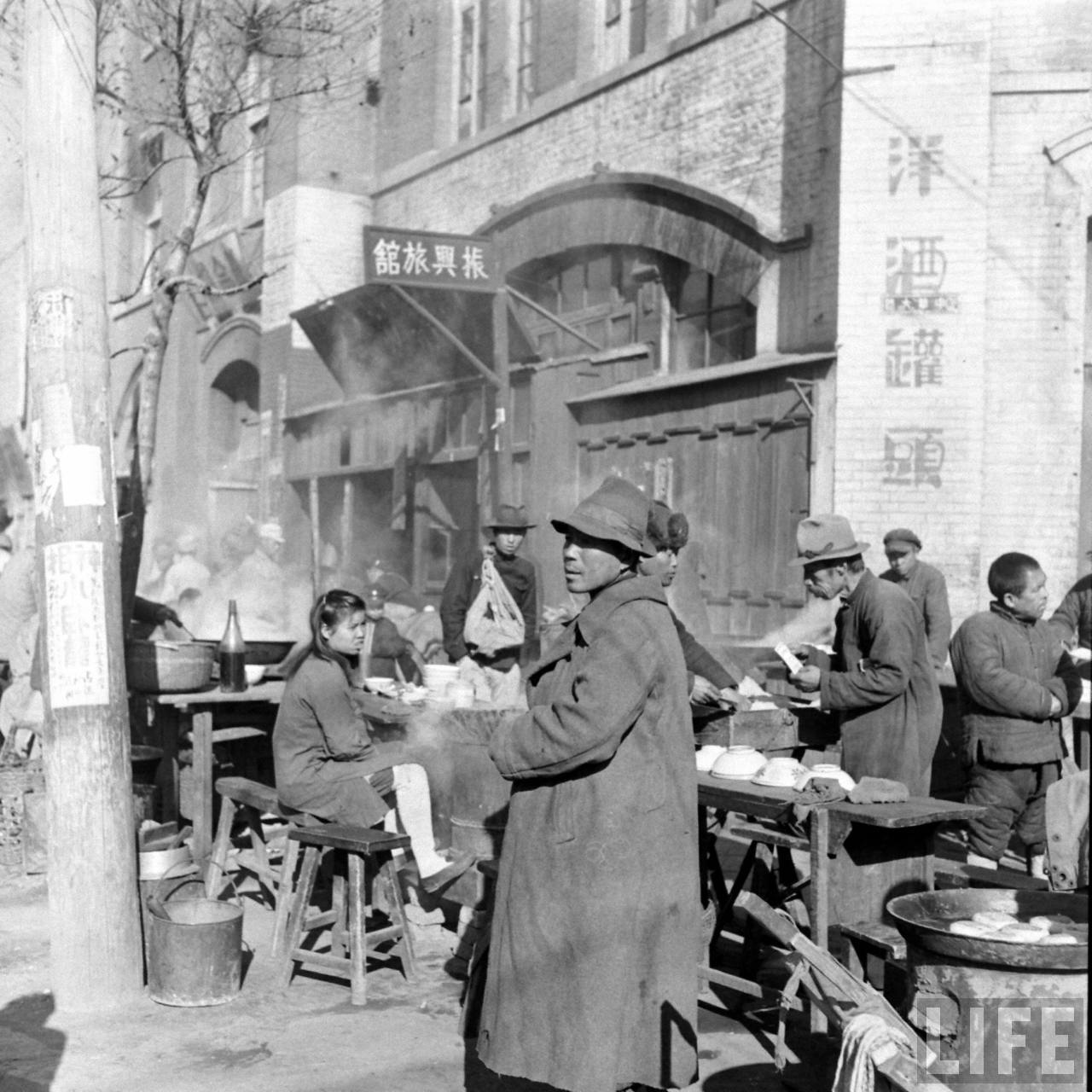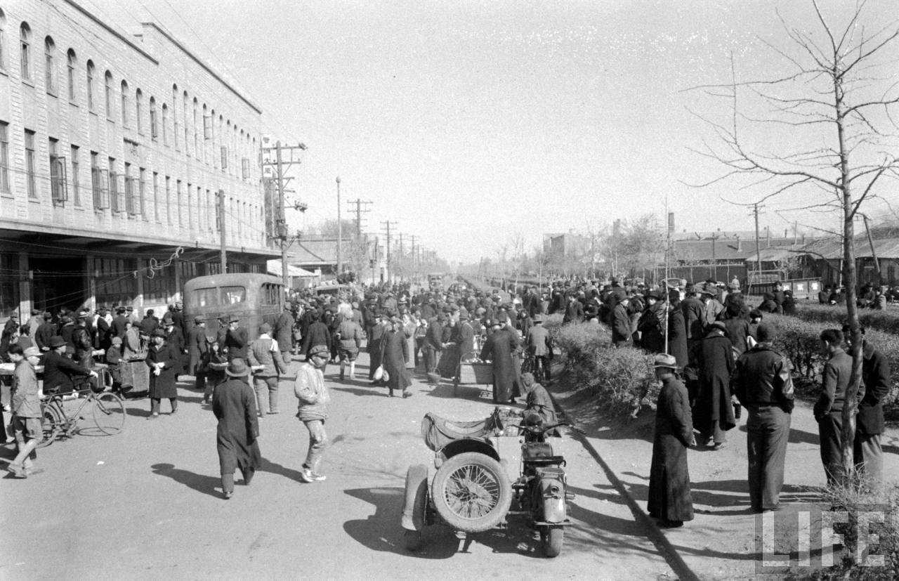 1948年,华北。城市,清晨喧闹的早市。.jpg