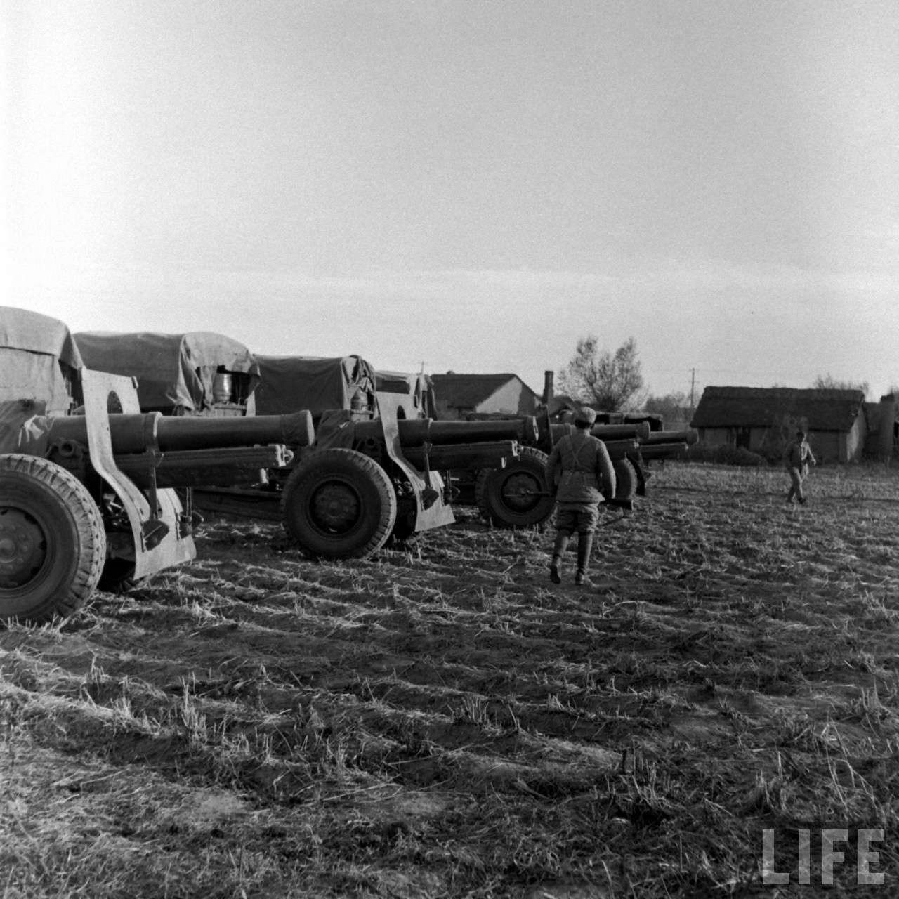 1948年10月,华北。国军傅作义部正在积极备战,迎战从满洲战场山海关打过来的东北共军以及东面来自山东的华东共军的夹击。这是城郊炮兵战地。.jpg