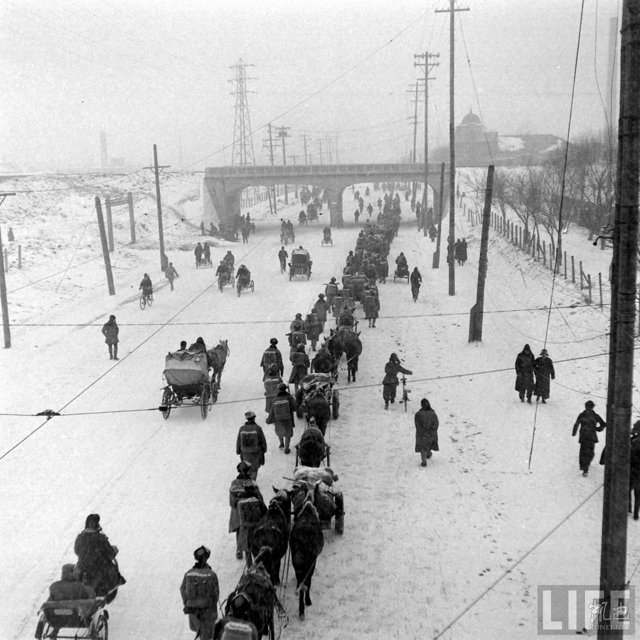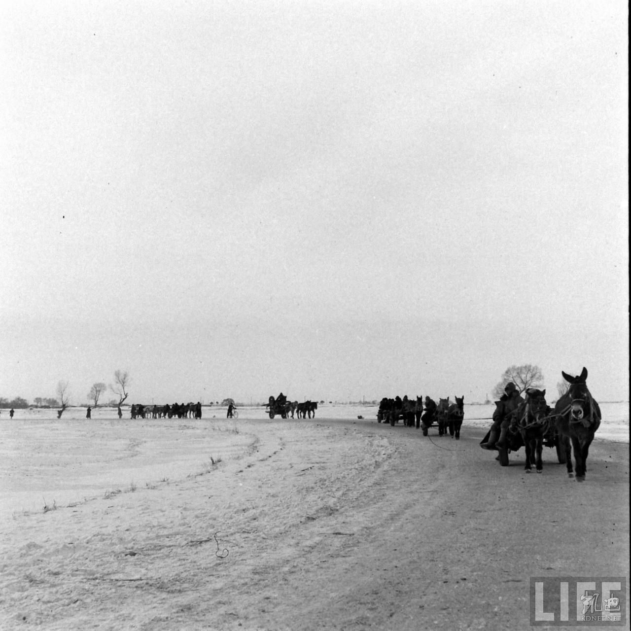 1948年,满洲。东北平原上的马车队。.jpg