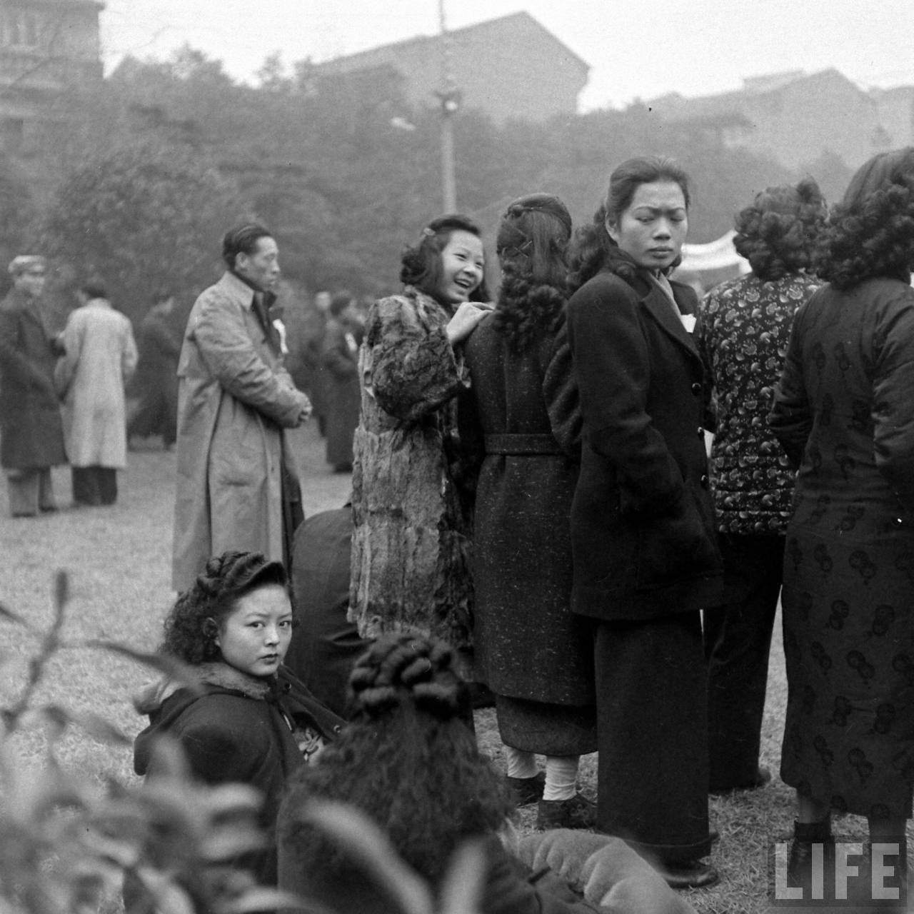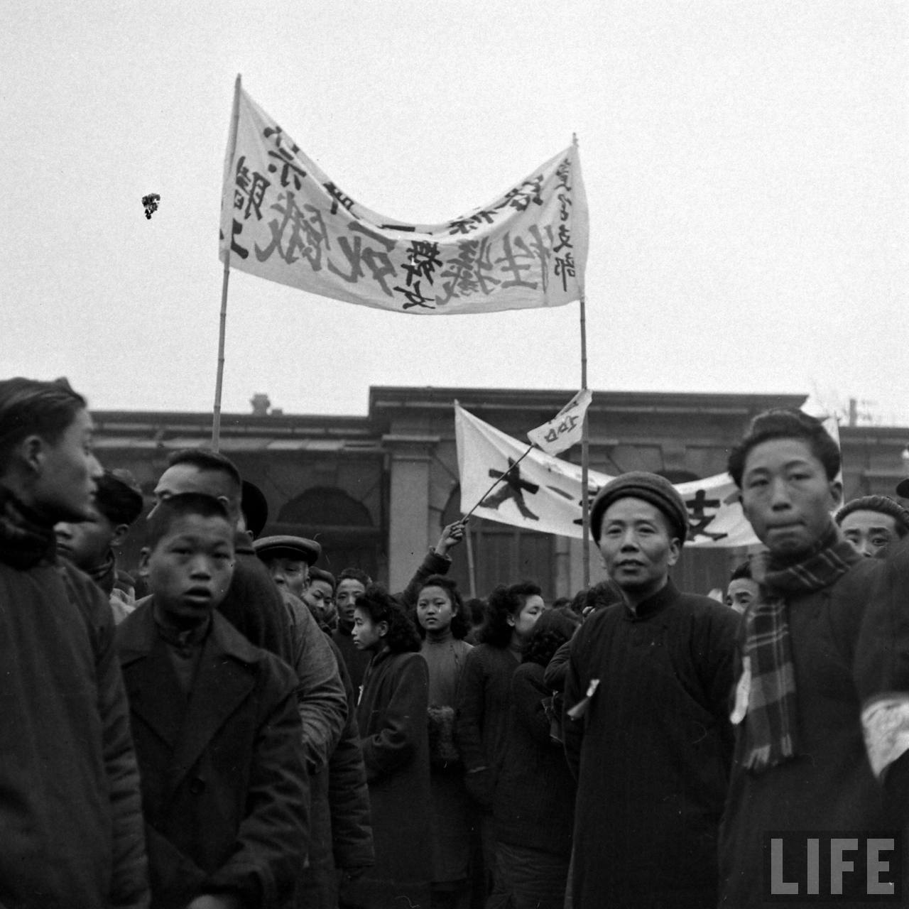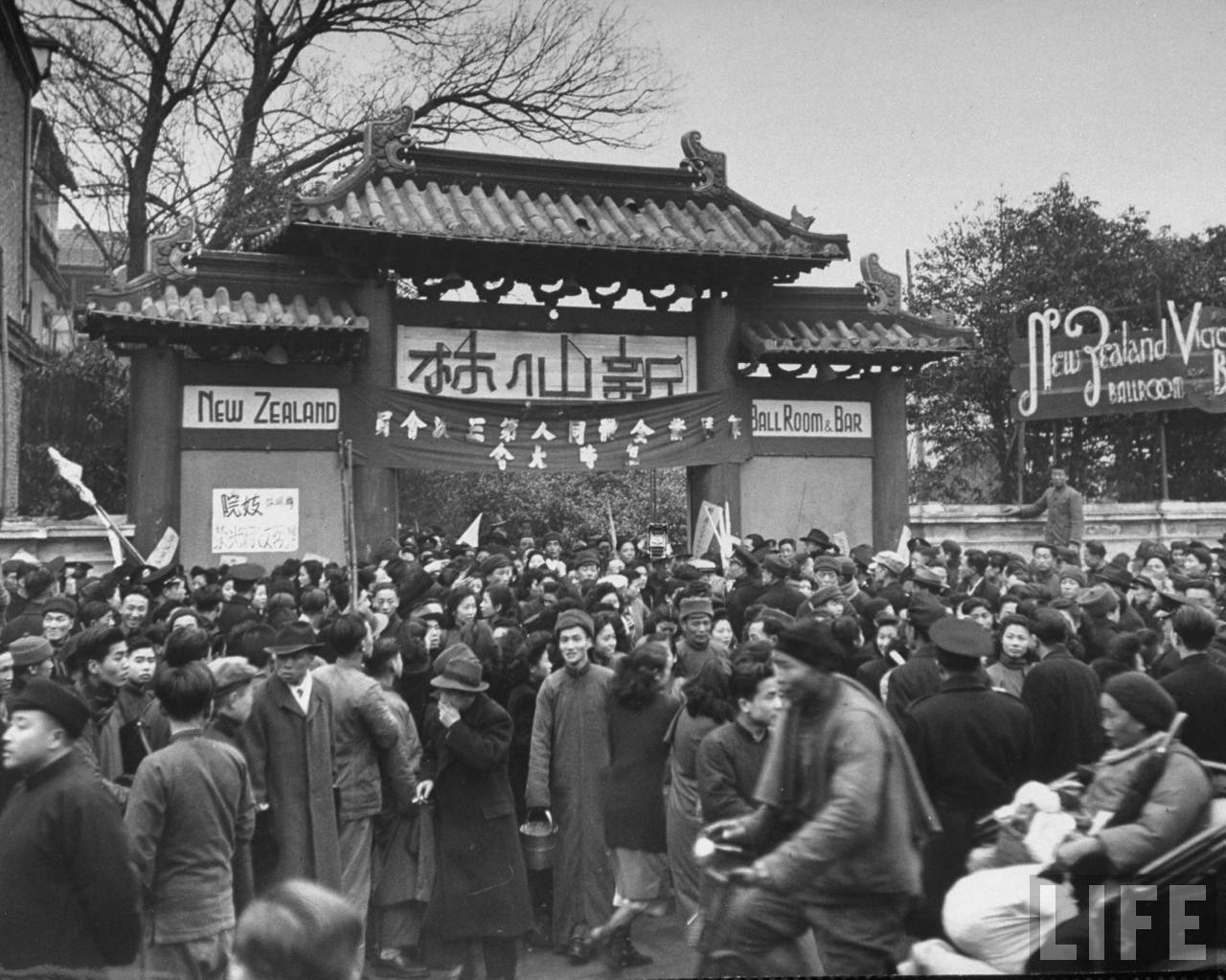 1948年1月31日,上海。参加舞女潮游行示威的人群.jpg