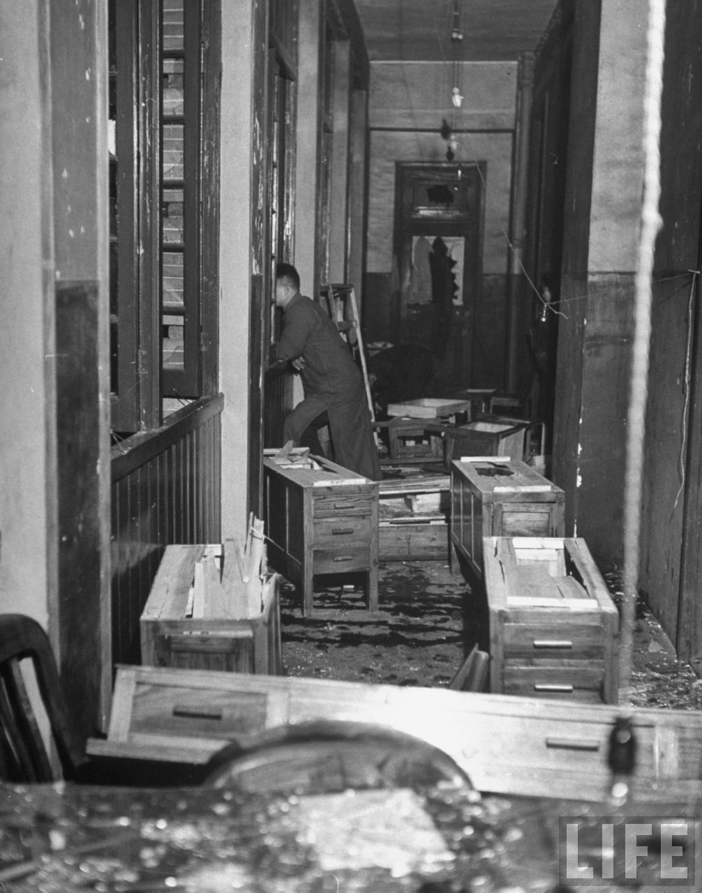 1948年,上海。舞女潮骚乱过后政府官员在清理现场.jpg
