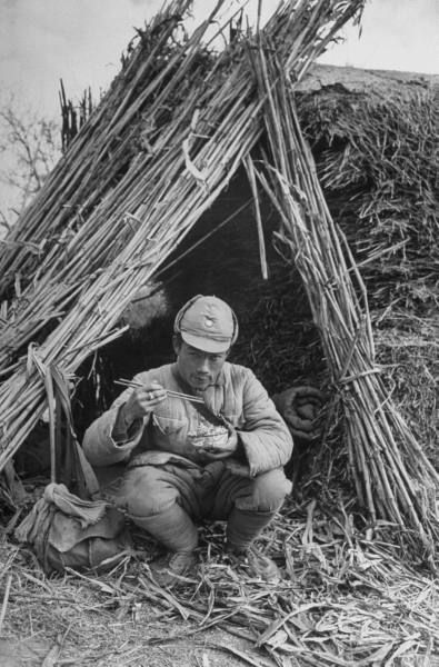 1948年12月,中国安徽省。国军哨兵在哨位就餐。.jpg