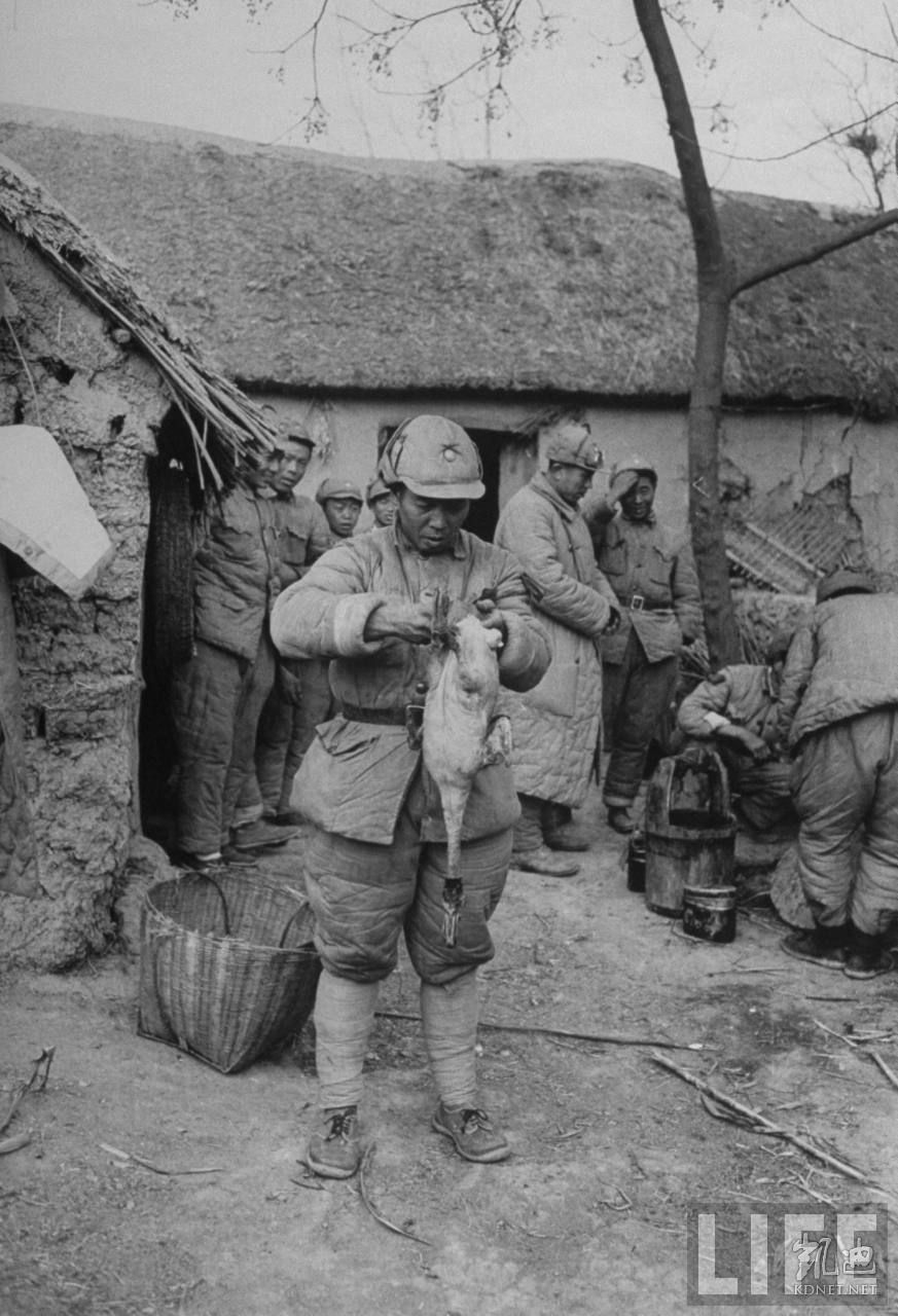 1948年12月,中国安徽省。国军第九十九军伙夫在杀鸡。.jpg