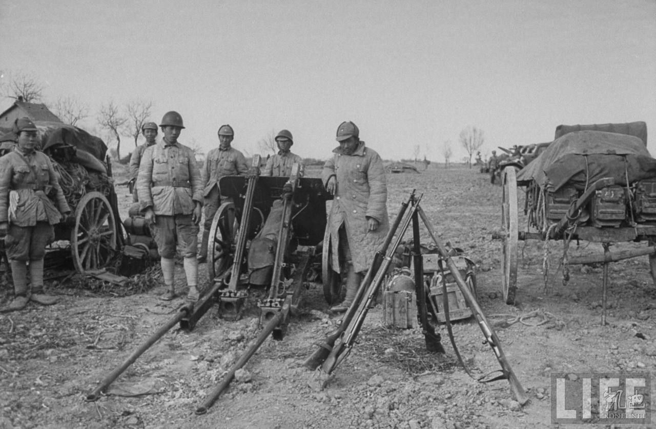 1948年12月,中国安徽省。国军第九十九军的炮兵和他们的武器。1948年9月,恢复99军番号,军长胡长青,副军长胡建修,下辖艾瑗的92师和杨达的99师,杨汝贤的268师。.jpg