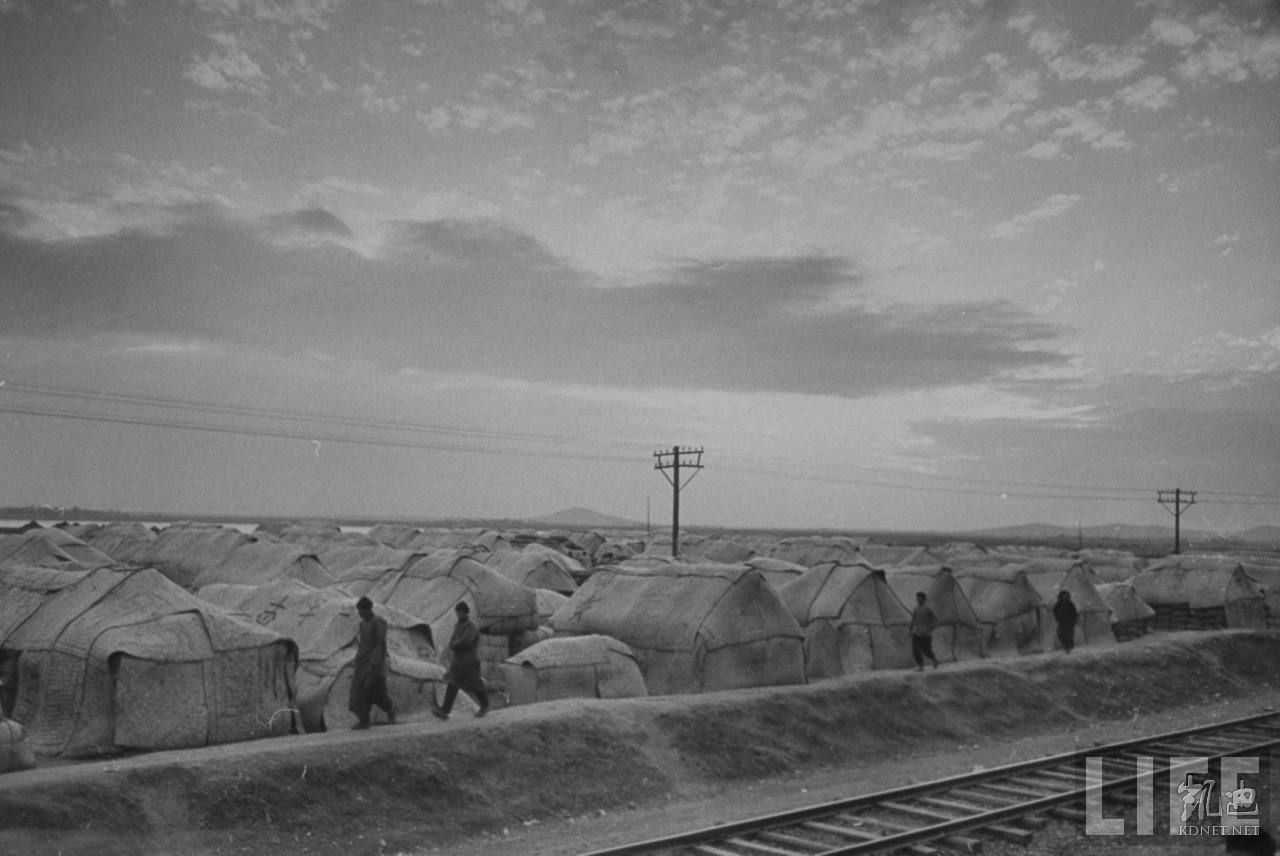 1948年12月,蚌埠。从共产党占领区逃出的难民拥挤在铁路沿线,这是为他们搭建的帐篷。.jpg