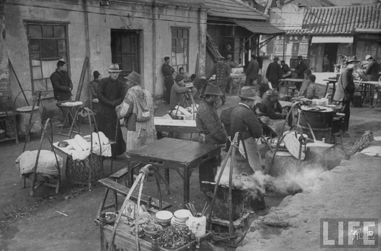 1948年12月,蚌埠。南下的难民在一个集镇用餐。.jpg