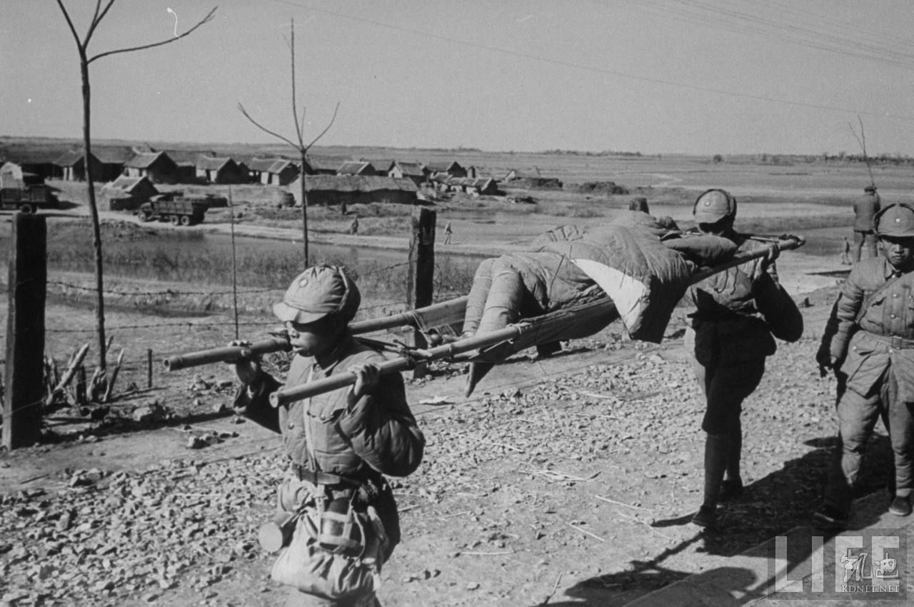 1948年12月,蚌埠。国军士兵抬着伤兵。.jpg