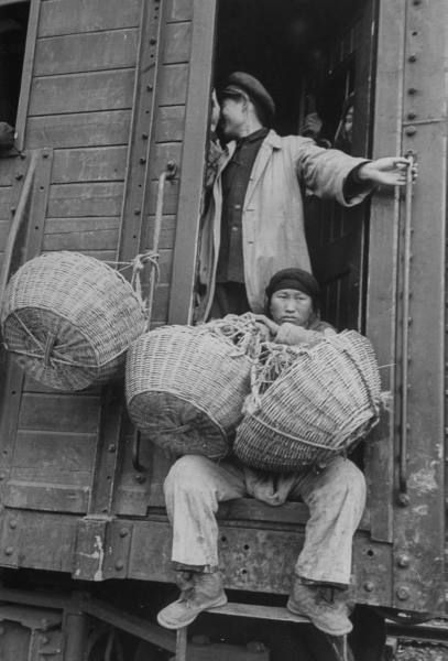 1948年12月,蚌埠。Chang Pa Ling 火车站难民,提篮里不知装的什么。.jpg